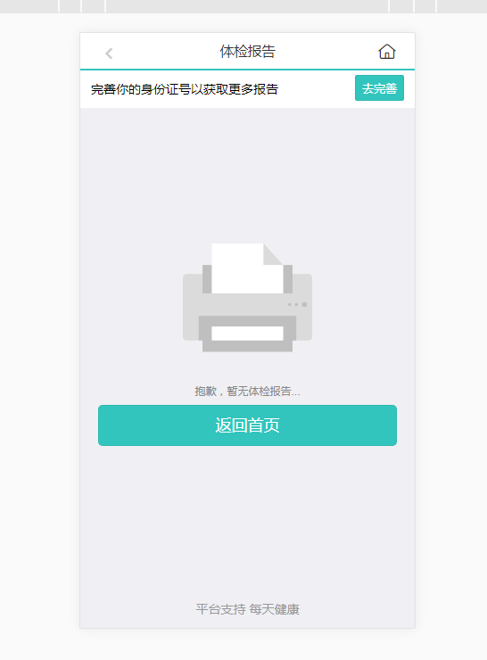 - 只需要显示体检报告列表状态及无报告状态页面,无功能开发状态页面